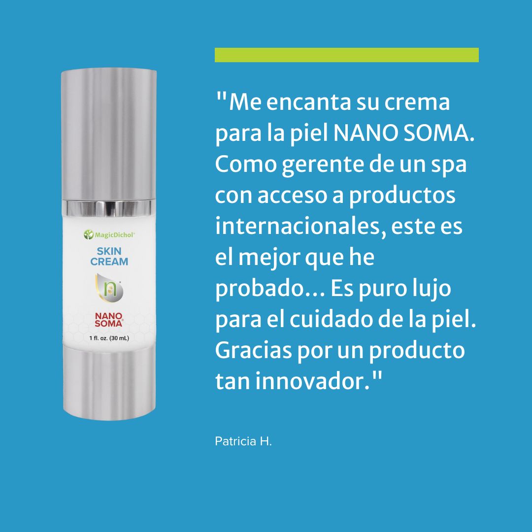 Con su ingrediente Metadichol®, derivado de alimentos y patentado en todo el mundo, la Crema Cutánea NANO SOMA® potencia la salud celular en su esencia,* ayudando a suavizar las líneas finas y las arrugas* y a estimular la producción de células madre pluripotentes.* Como te dirán nuestros muchos usuarios satisfechos de la crema cutánea, ¡es como llevarte el tratamiento de spa a casa!