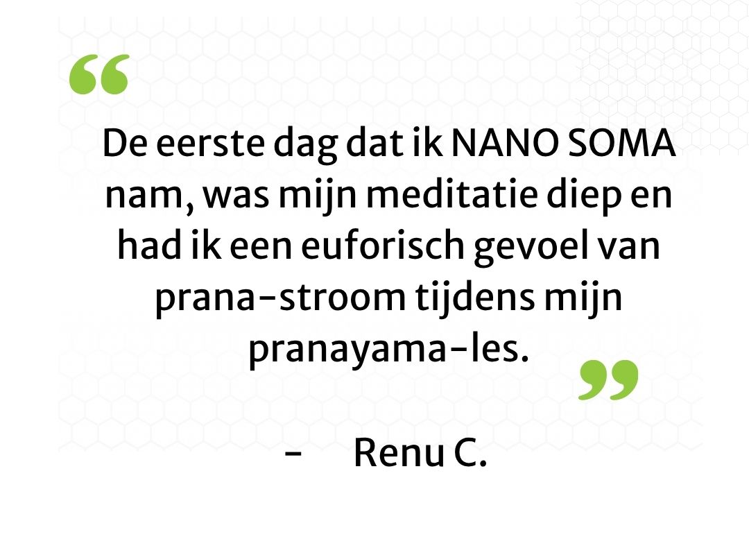 Velen hebben echter ook een energetisch voordeel van NANO SOMA gerapporteerd, een voordeel dat meditaties versterkt, een gevoel van energetische helderheid geeft en het algehele gevoel van welzijn verhoogt.* Renu C. deelt: