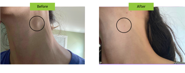 Below, Erin L. soothed the appearance of a bump on her neck by adding the NANO SOMA Topical Gel to her NANO SOMA sprays. In under two months, all signs of the bump were gone.